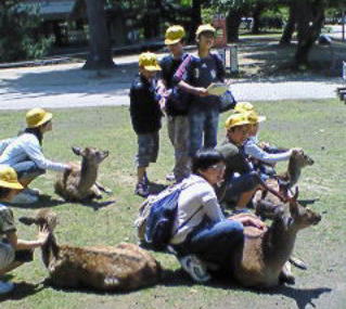 もうすぐお昼です。ボランティアガイドさんの案内で東大寺周辺を見学しています。