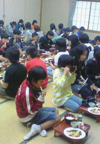 旅館での楽しみの一つは夕食です。豪華な食事に舌づつみ。この後は買い物の時間です。
